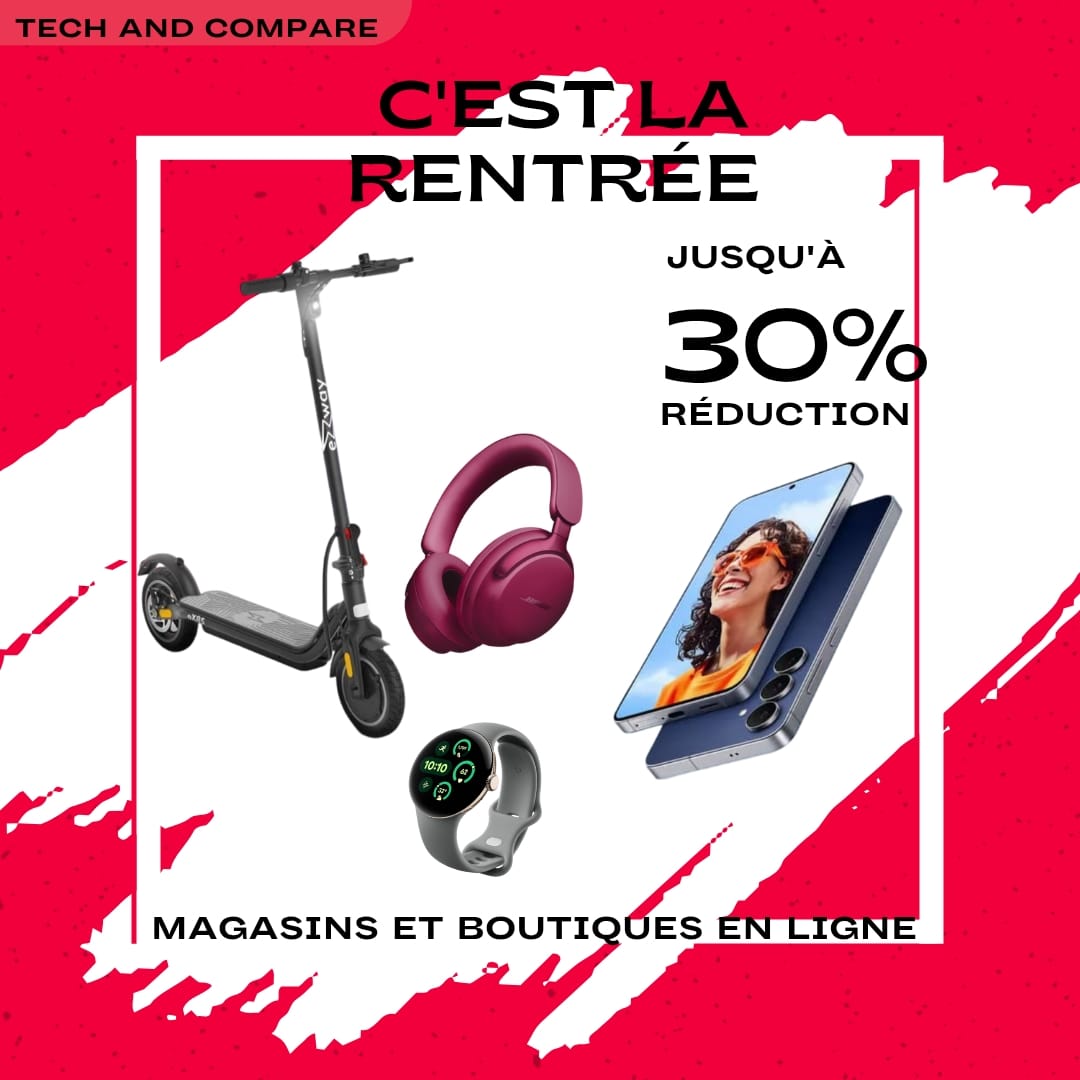 La rentrée est le moment idéal pour profiter des promos, soldes et chutes de prix sur les équipements high-tech : smartphones, trottinettes, casques, montres, TV, etc. Voici un panorama des meilleures offres chez Amazon, Darty, Fnac, Cdiscount, Boulanger, Samsung…, ainsi que les atouts de chaque produit pour bien choisir.