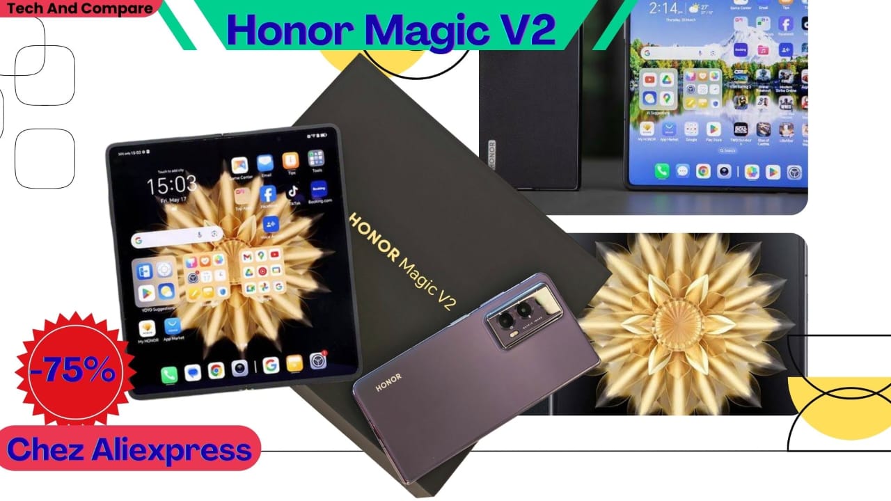 Actuellement, l’Honor Magic V2 bénéficie d’une réduction très rare sur AliExpress, avec des baisses de prix allant jusqu’à -72 %, voire jusqu’à -75 % selon certaines sources.